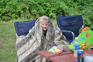 After our hike back up the mountain it was time for lunch. Cody was cold...the end of July...in Arizona!!